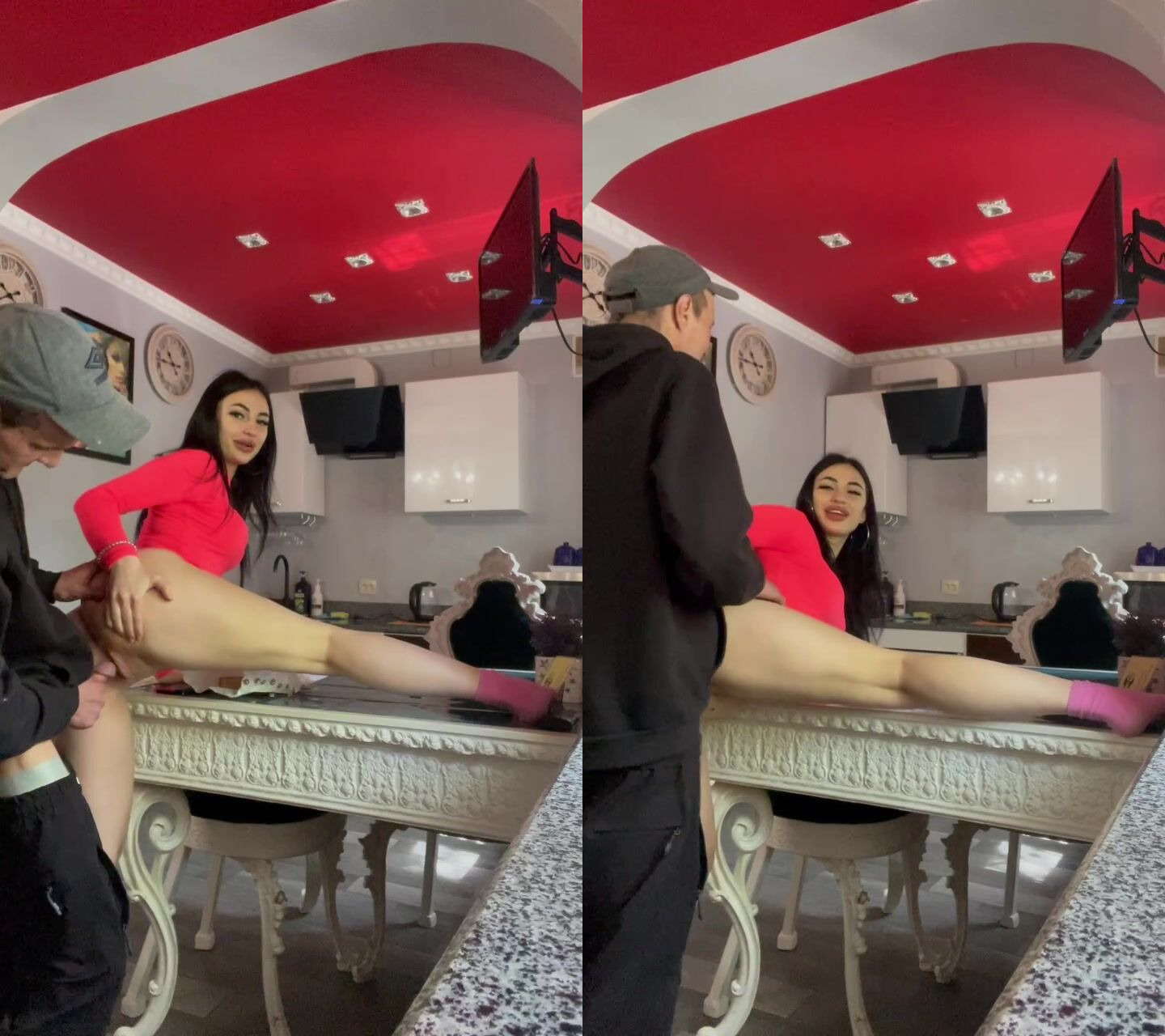 Stepfather and his stepdaughter moved to a new apartment. They decided to celebrate it right away, without delaying the pleasure. They decided to fuck in doggy style on the table.