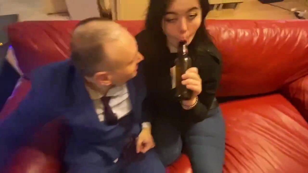 It's unknown whether they'll remember it the next day, but this couple amused all their friends. The slutty brunette sister started shoving a beer bottle deep into her mouth and then sucking her drunk brother's tongue. At that moment, they definitely thought it was fun.